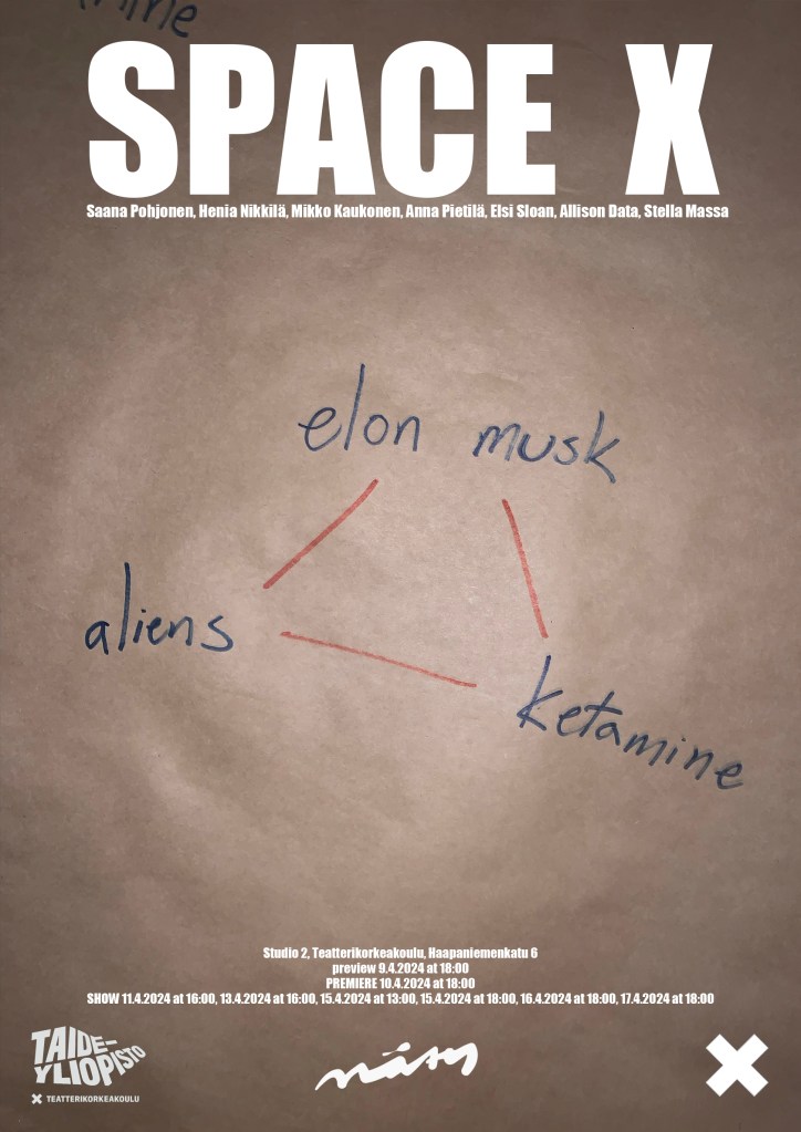 The concept, performing and scenography for a contemporary theatre play about Elon Musk’s trans daughter and the escape from Earth to Mars.
